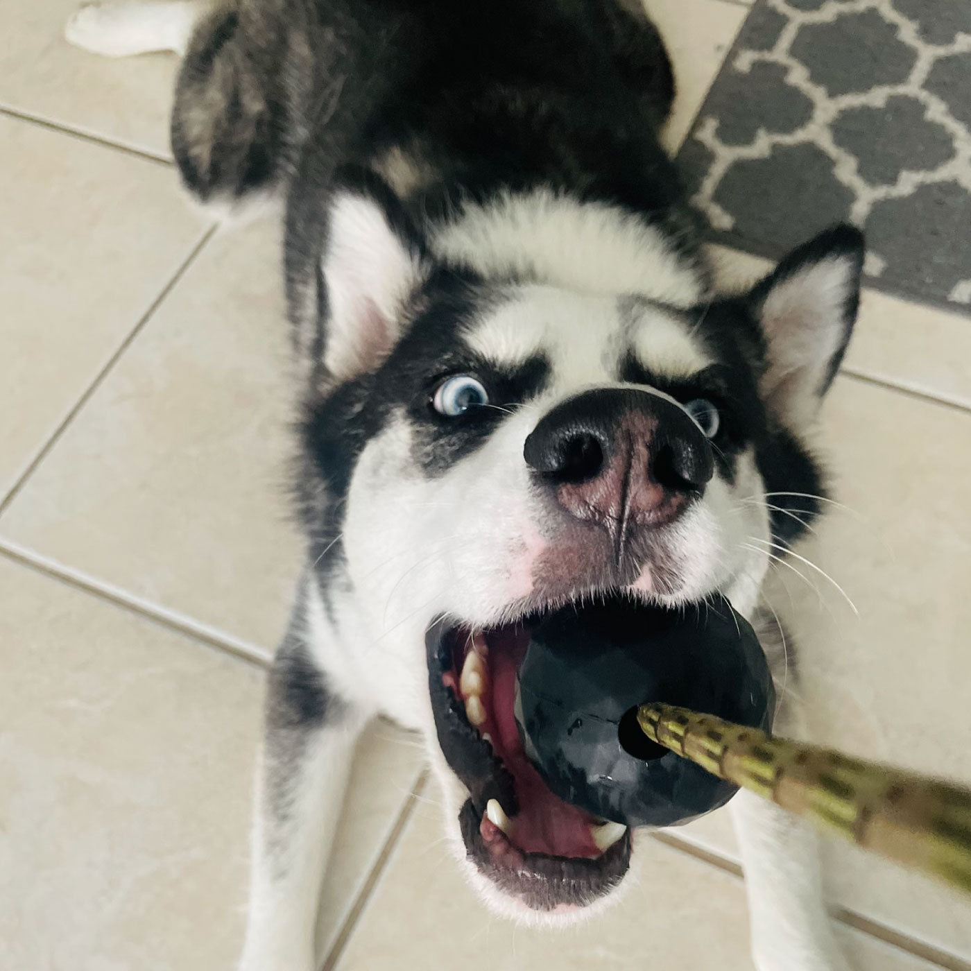 Our popular Coal Black Moki dog ball tooled into a durable rope tug. This ball and paracord combination is designed to be one of the most durable rope tugs on the market.