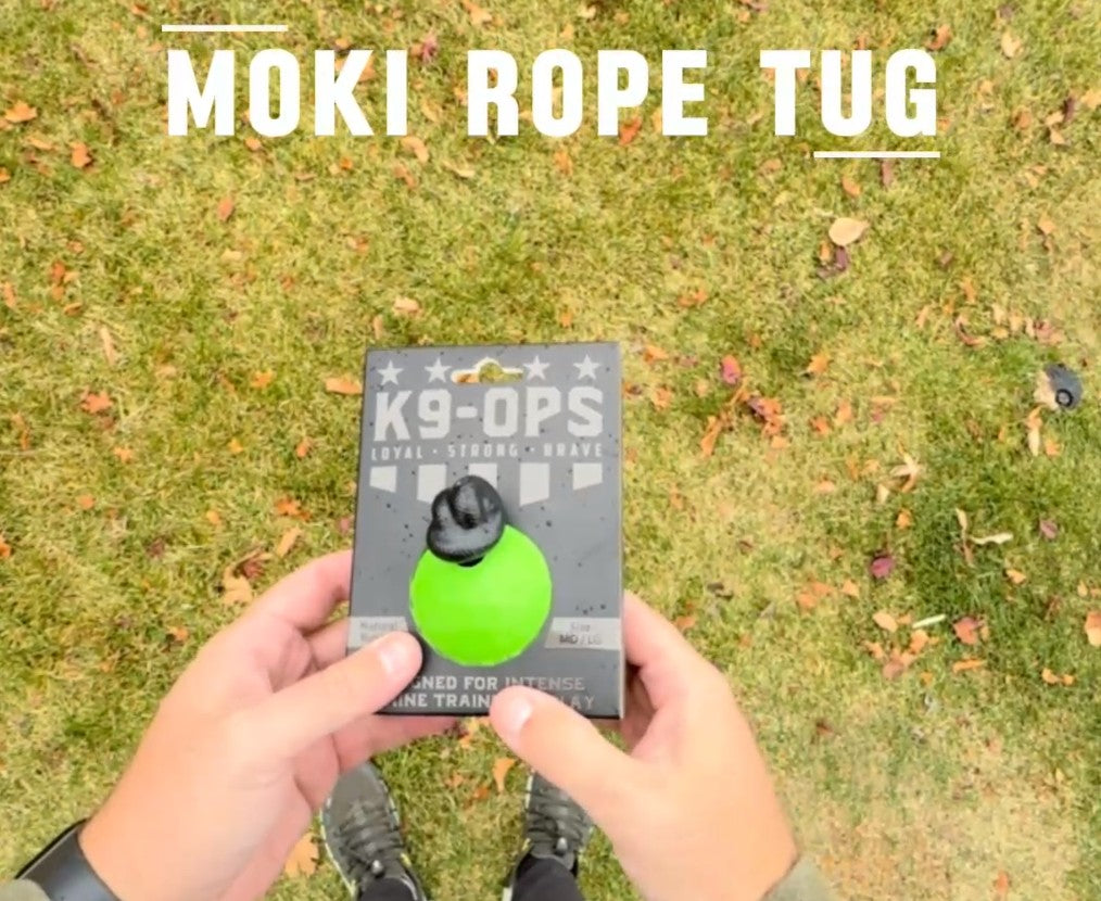 Our popular Ruby Red Moki dog ball tooled into a durable rope tug. This ball and paracord combination is designed to be one of the most durable rope tugs on the market.